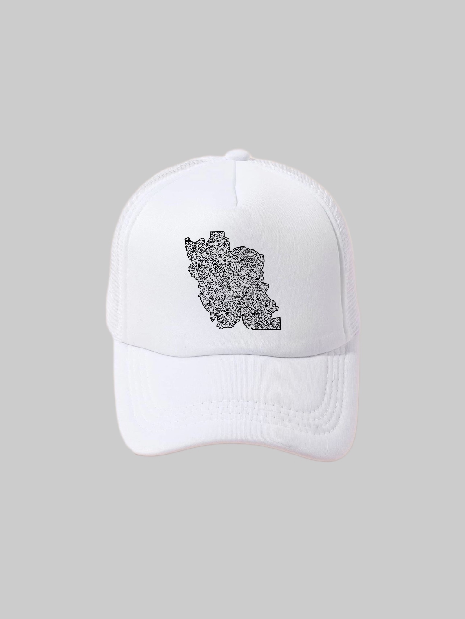 کلاه نقشه (سفید) ترکیبیست از هویت سرزمینی و زبان عاشقانه فرهنگ ایرانی.
